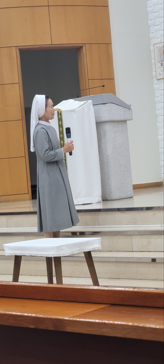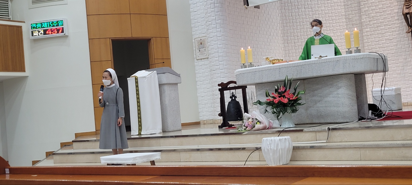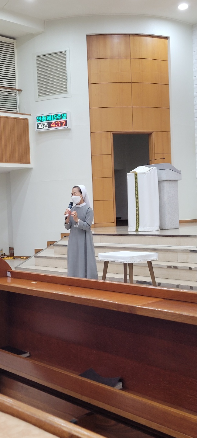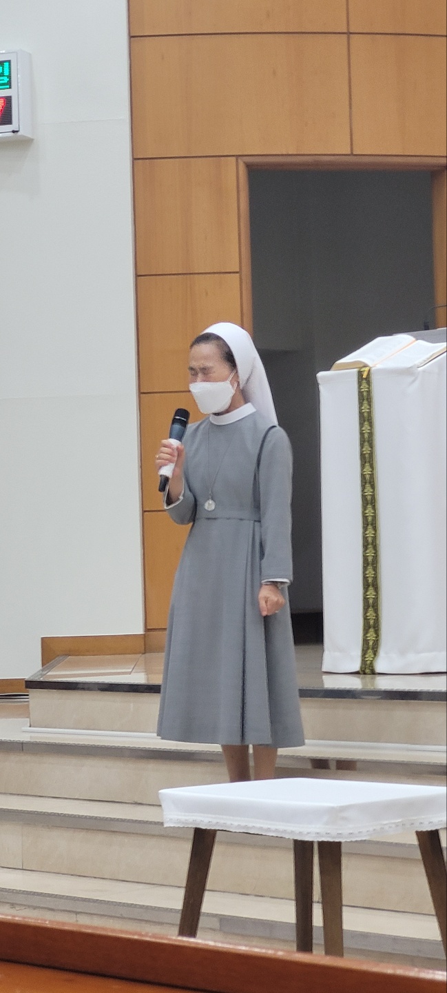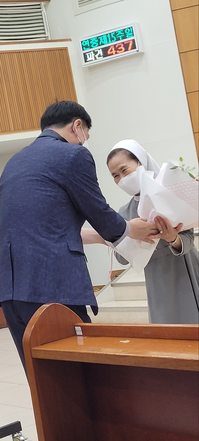 이어 수녀님의 감사말씀과 옥구슬같은 목소리로 수녀님의 감사 화답 노래로 함께 자리한 교우들의 마음을 더욱 기쁘게 해주었습니다.