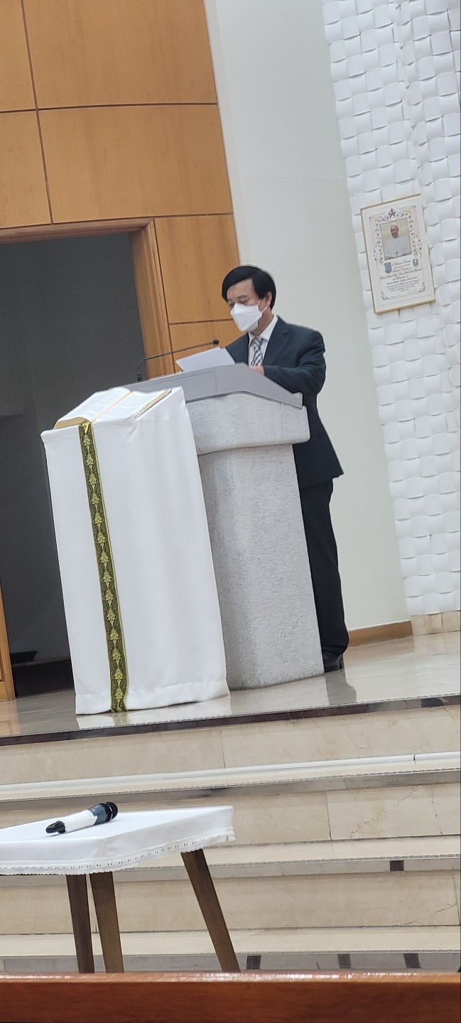 한현식 총회장님의 축하인사와 교우들의 사랑이 담긴 꽃바구니 증정식이 있었습니다.