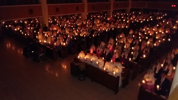 성당 안은 점점의 촛불이 물결처럼 퍼져나가,