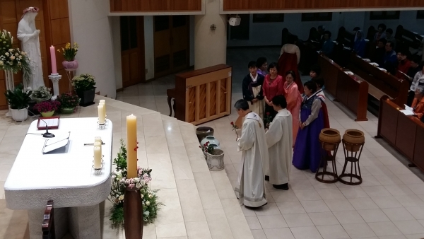 묵주의 기도와 함께 성모님께 꽃과 초를 봉헌하는 행사입니다.