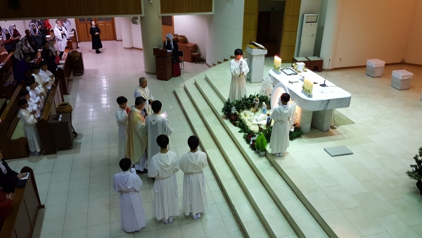 성탄 밤미사 전례에 함께 하신 문재현 바오로 보좌신부님의 복음 낭독과