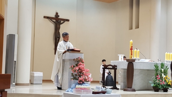 정연정 디모테오 주임 신부님은 강론을 통해 새 영세자들에게 당부와 축복의 말씀을 전하셨습니다.