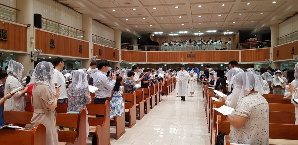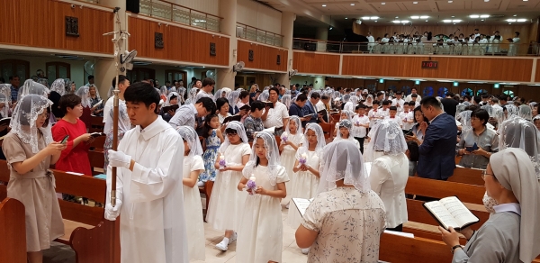 오늘 처음 성체를 받아 모신 어린이들은 주님의 사랑에 감사와 찬미를 드리며