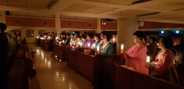 빛의 예식은 어둠과 고요 속에서 시작되었습니다.