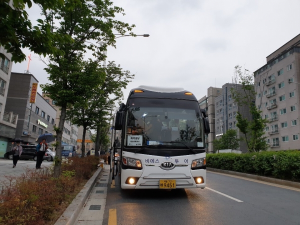각 구역별로 출발이 시작되고 차 안에서는 인사 나눔과 묵주기도 (영광의신비)를 받치고 친교의시간을 갖고보니 , 배론