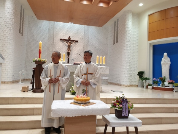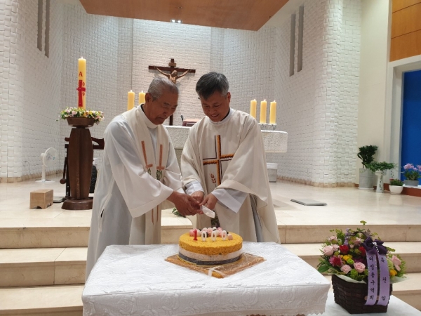있었습니다. 이어서 한국희프란치스코 총회장님께서 떡 케익 준비해주셔서 정연정디모테오 신부님과 임덕일 아마또 신부님
