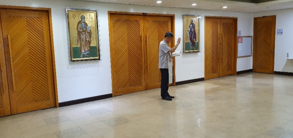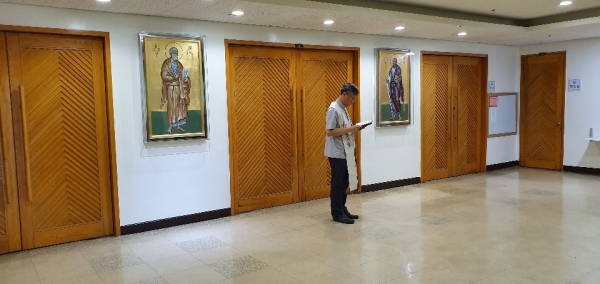 그리스 아테네 공방에서 제작된 성 베드로 사도와 성 바오로 사도의 이콘이 소성전( 4층) 전면에 설치되었습니다.