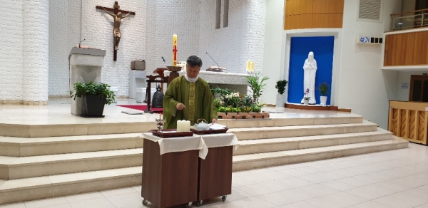 화곡본동성당 대성전 안에서는 아침 일찍부터 정연정디모테오 신부님, 원장 수녀님 ,
