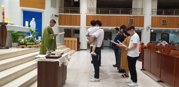 집안에서 사랑이 넘치는 마음으로 이루어졌습니다. 예비자분들께서는 세례를 청하면서