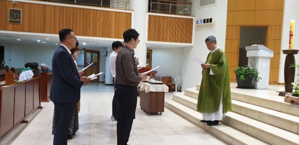 었습니다. 이어서 성유도유식과 신앙고백을 청하였습니다. 성령을 믿으며 거룩하고 보편된