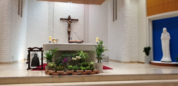 정연정 디모테오 신부님께서 10시 미사중에 대성전 양쪽 기둥에 있는 열두 십지가