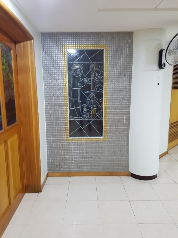 ★ 대성전 안 앞 양쪽 성프란치스코성인, 성요셉성인 둘레 타일 작업