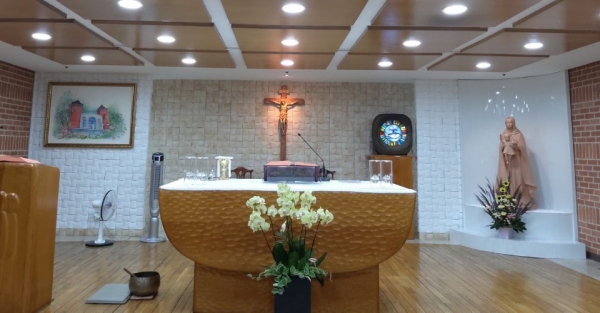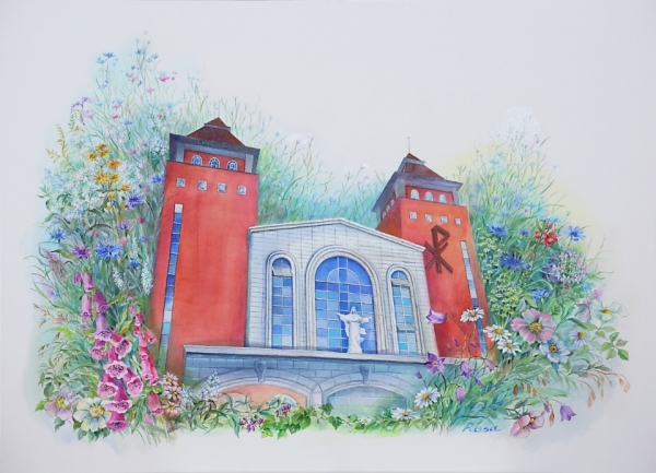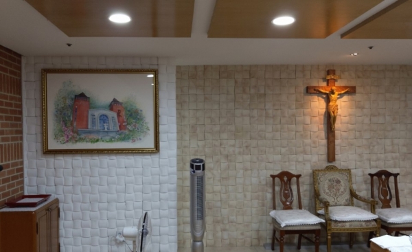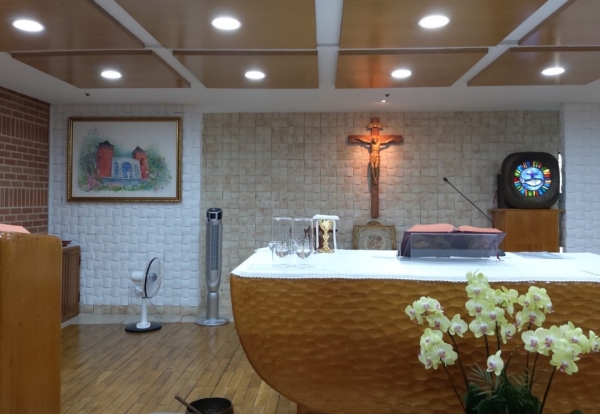 이 모습을 담아 성당 전경 그림을 소성전 제대위에 이렇게 새로이 자리를 잡았습니다.