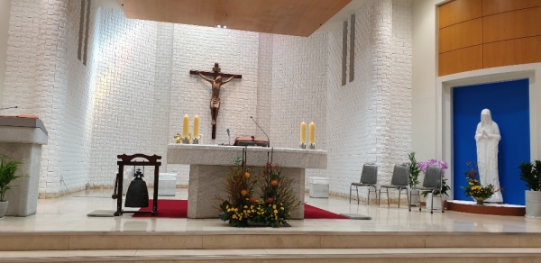 하얀옷을 입고 제대위에 나란히 서 있는 모습들이 아기천사들과 성모님께서 함께 환하게 웃으시며