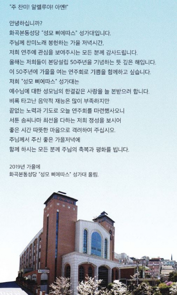 화곡본동성당 " 성모 삐에따스" 성가대 연주회로 주님께 찬미노래 봉헌하는 가을 저녁 시간을 통해