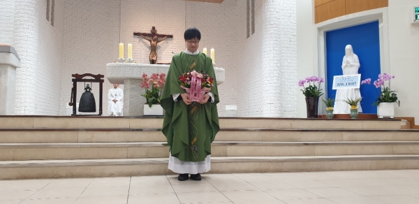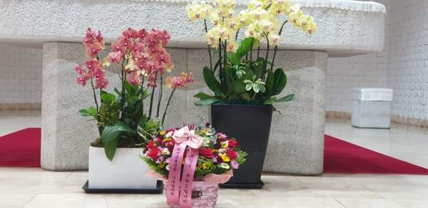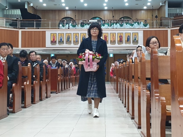이양숙 아녜스 청소년분과장께서 축하 꽃바구 전달식이 이루어졌습니다. 이어서 한국희 프란