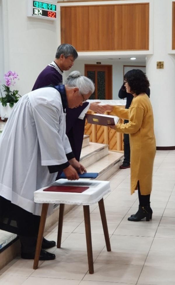 당부신 신부님 말씀 끝으로 임명장 수여식이 끝이 났습니다.