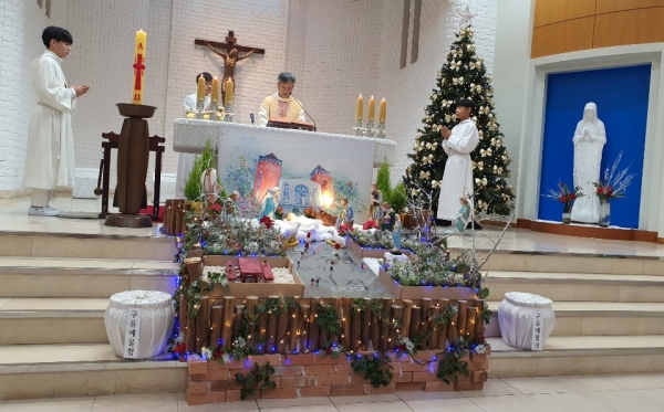 성탄 대축일 낮 미사에 작은 새싹들의 탄생을 축하하는 세례식이 거행 되는 시간에 정연정디모테오