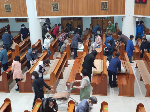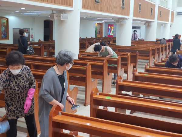 새로운 방석으로 교체하니 주님의 대성전이 깨끗해지고