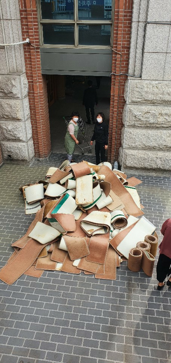 오래된 방석을 교체하려니 대청소가 필요해 미사후 수녀님,