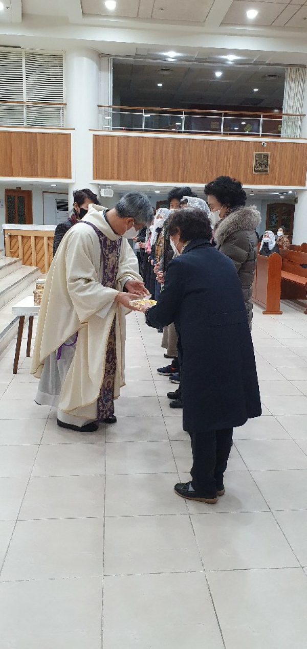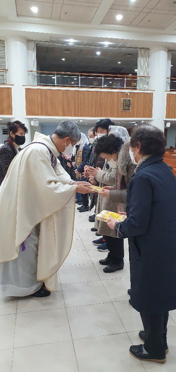 집전으로 시상식이 이루어졌습니다. 신부님께서는 한분 한분 선물을 증정하시며