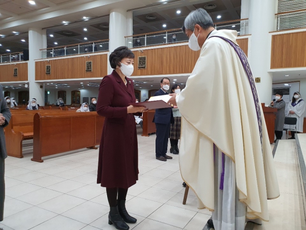 사목위원들 수여식이 있었습니다. 사목회 총회장 김복희 레오나 외 13명이 차기