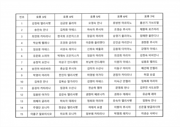 12월 24일(목) 성탄밤미사 참례 확정자 명단(2020.12.18. 현재)