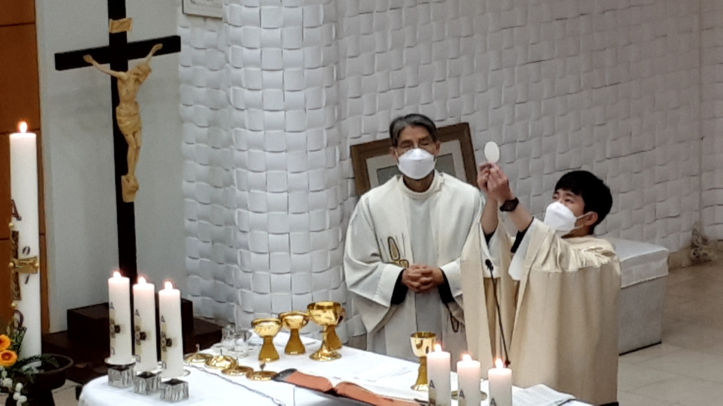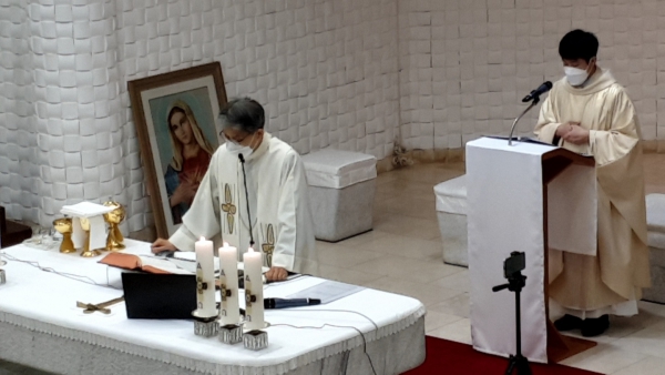 정월기프란치스코. 심현보 루카 신부님 공동 집전으로 말씀전례. 세례전례.