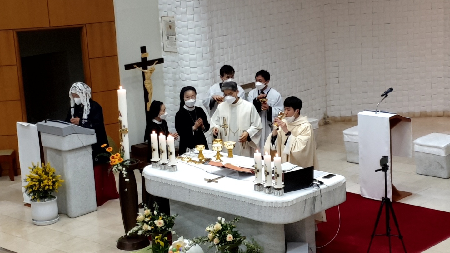 성찬전례로 파스카 성야 미사가 진행되였습니다.