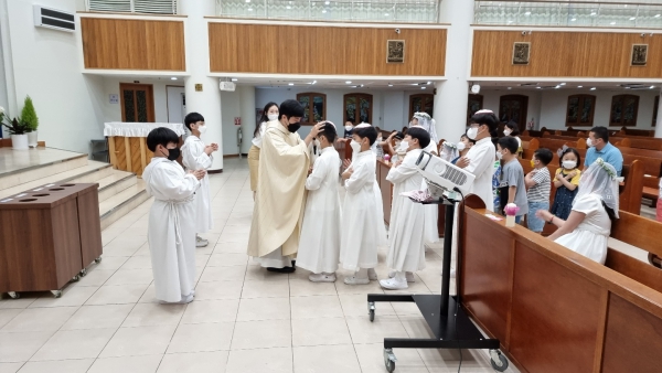 중 하나인데 ,아아들은 3학년,즉 10살이 되어 교리를 배우고 나서야 첫영성체를