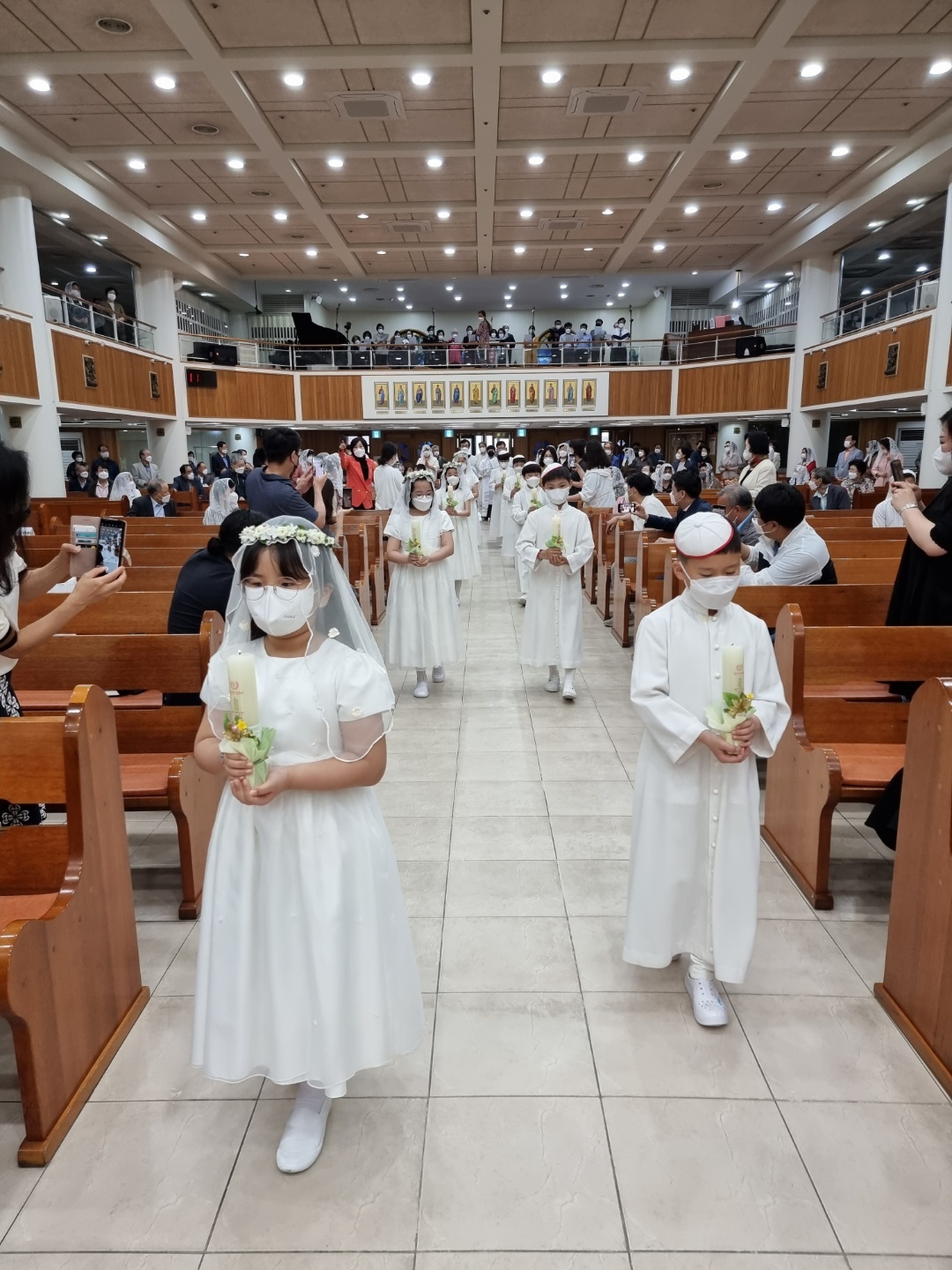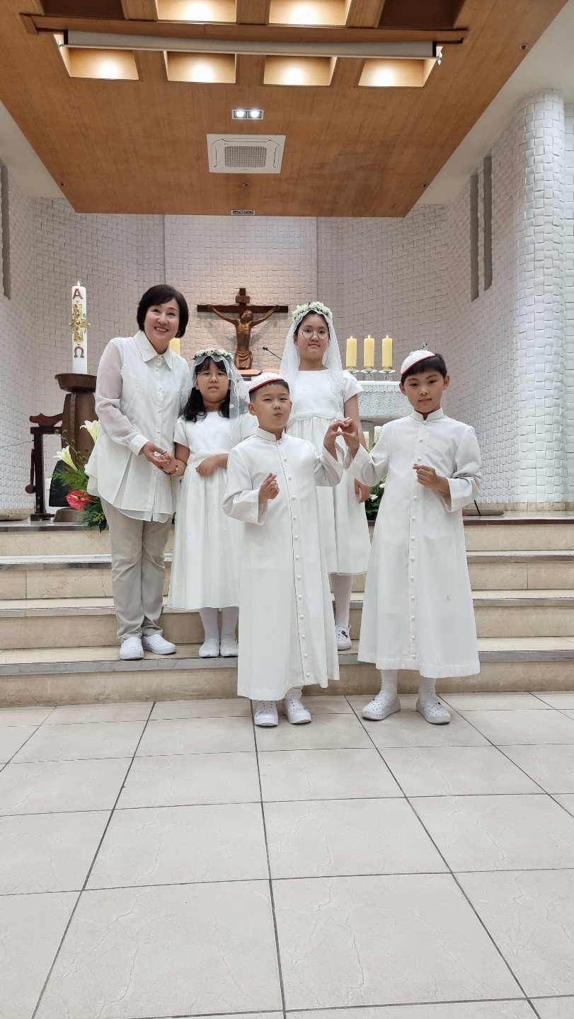 찬미예수님 코로나로 인해 힘든 시간에도 한달 동안 교리공부 과정을 마치고 총 5명 아이들이 세례식에 대한 설레이는 마음으로 한명 한명이 해 맑은 미소속에서 심현보 루카