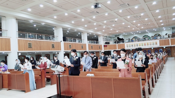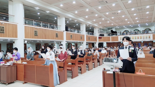 새롭게 시작되길 바라신다고 하셨습니다. 강론 후 세례예식이 진행되었습니다. 사랑스런 주님의 자녀로 10명의 예비신자가