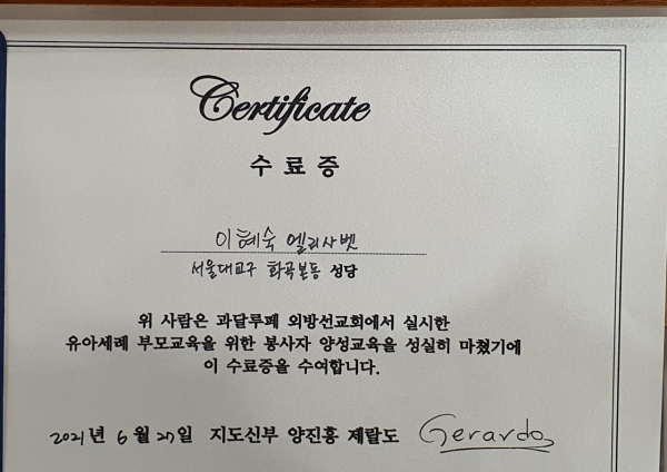 축복장을 받으셨습니다.