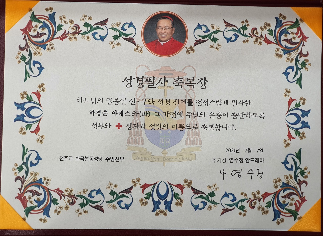 하경순아녜스 자매님께서 성경필사를 하여