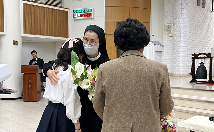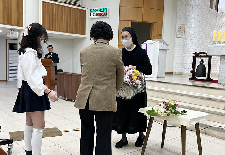 원장수녀님께서는 2022년 3월 22일 화곡본동성당에 오셔서 주임신부님의 사목방침에 따라 우리 교우들이 복음중심의 신앙생활을 할 수 있도록 헌신적인 사랑을 실천하고 계십니다. “보십시오. 저는 주님의 종입니다. 말씀하신 대로 이루어지기를 원합니다.” 루카복음 성모님 영보 말씀을 새기고 하느님에 대한 사랑을 몸소 실천하고 계십니다. 항상 계셔야 할 곳에서 수녀님의 사명을 묵묵히 수행하고 계시며 따뜻한 미소와 보살핌으로 신자들에게 기쁨과 행복을 주고 계십니다. 성모님을 닮으신 수녀님과 함께 할 수 있어서 우리 본당 공동체는 너무 행복합니다, 다시 한 번 원장수녀님의 축일을 진심으로 축하드리며 영육 간에 건강하시고 행복하시길 본당신자들 모두 한마음으로 기도 드립니다.