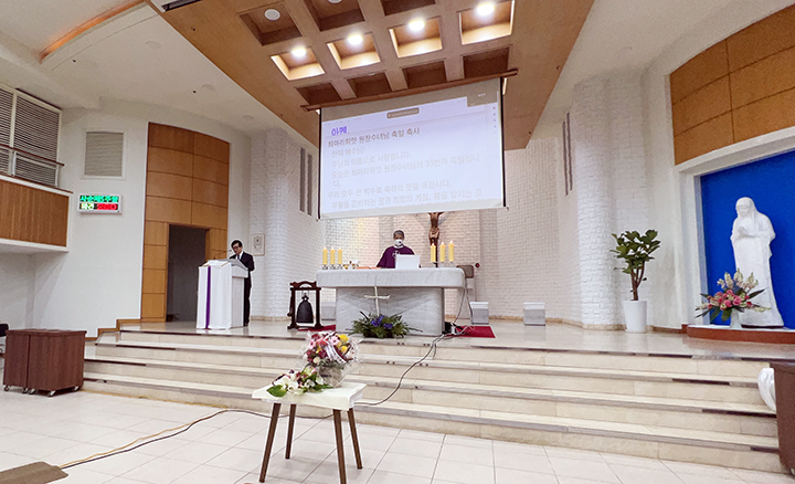 사순 제5주일 교중 미사 중에 최 마리휘앗 원장수녀님의 35번째 영명축일 미사가 있었습니다.